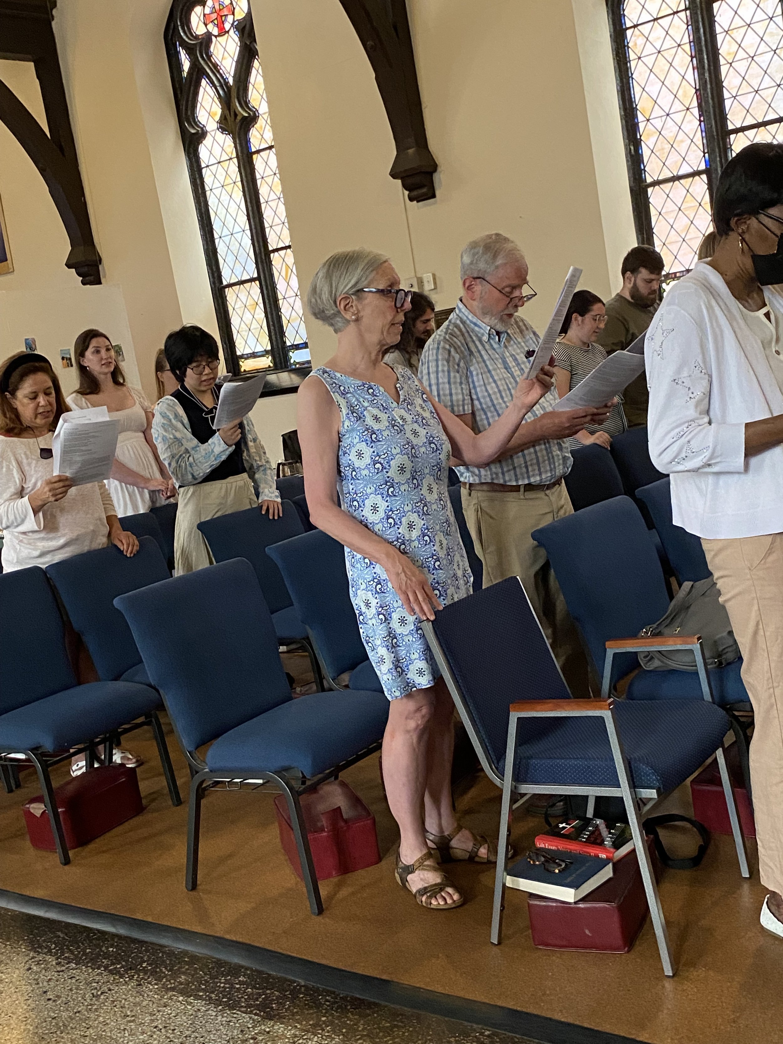 At the end of the service, the congregation turns and faces the front doors as a reminder that we are called to go out into the world βto love and serve the Lord.β .